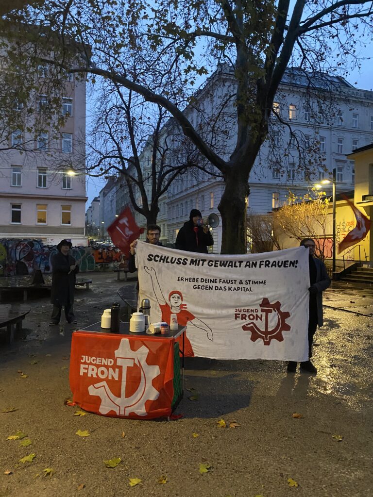 Zum Tag gegen Gewalt an Frauen waren wir in Wien, Linz und Innsbruck auf den Straßen. Mit unseren Materialien, in den Redebeiträgen auf den Kundgebungen und in Gesprächen mit den Menschen haben wir aufgezeigt, wieso dieses Thema nach wie vor hochaktuell ist und wie Gewalt an Frauen mit dem kapitalistischen System zusammenhängt.